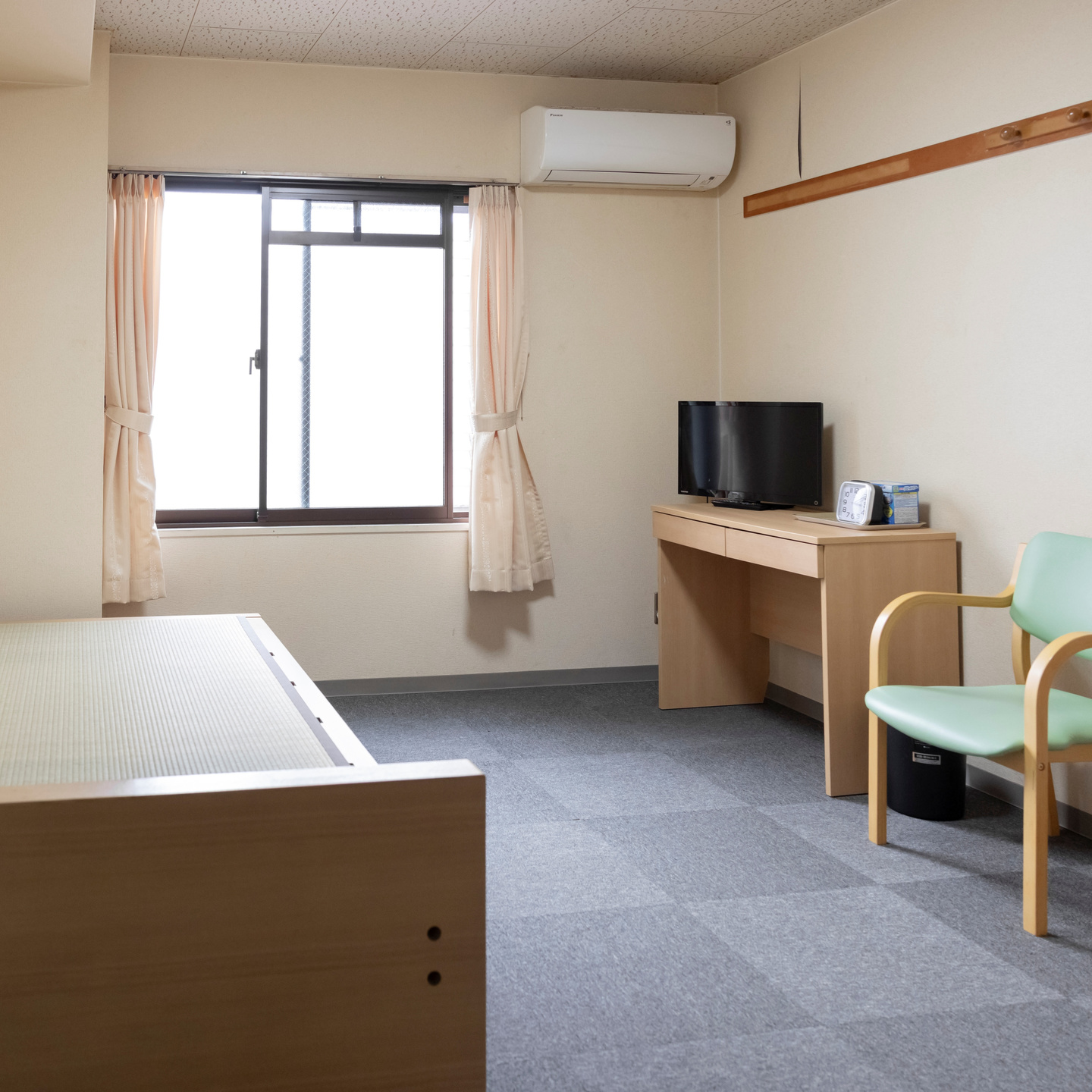 盟親では40名の寮生すべてに、個室を使用してもらっています。20室が和室で、20室はベッドを設えた洋室です。夏冬布団一式、テレビ、エアコン、デスク、いす、クローゼット等を備えています。